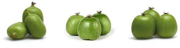 KiwiBerry are small - in the 5 - 20 gram range, with smooth hairless edible skins, and shapes varying from round to elongated.